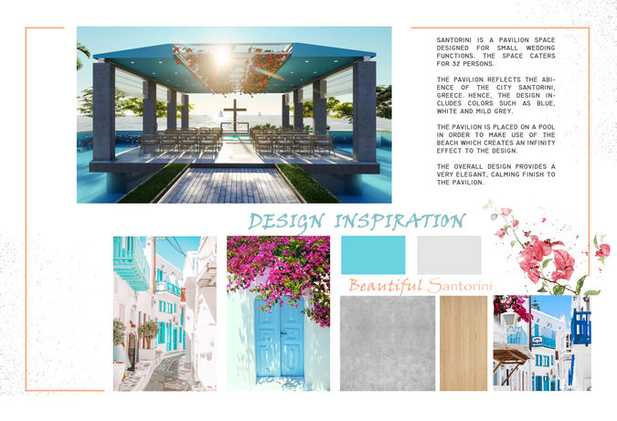 "Santorini" is a pavilion inspired by the beauty of the Greek city of Santorini. The space captures the beauty of Greece along with the essence and charateristics of the city.